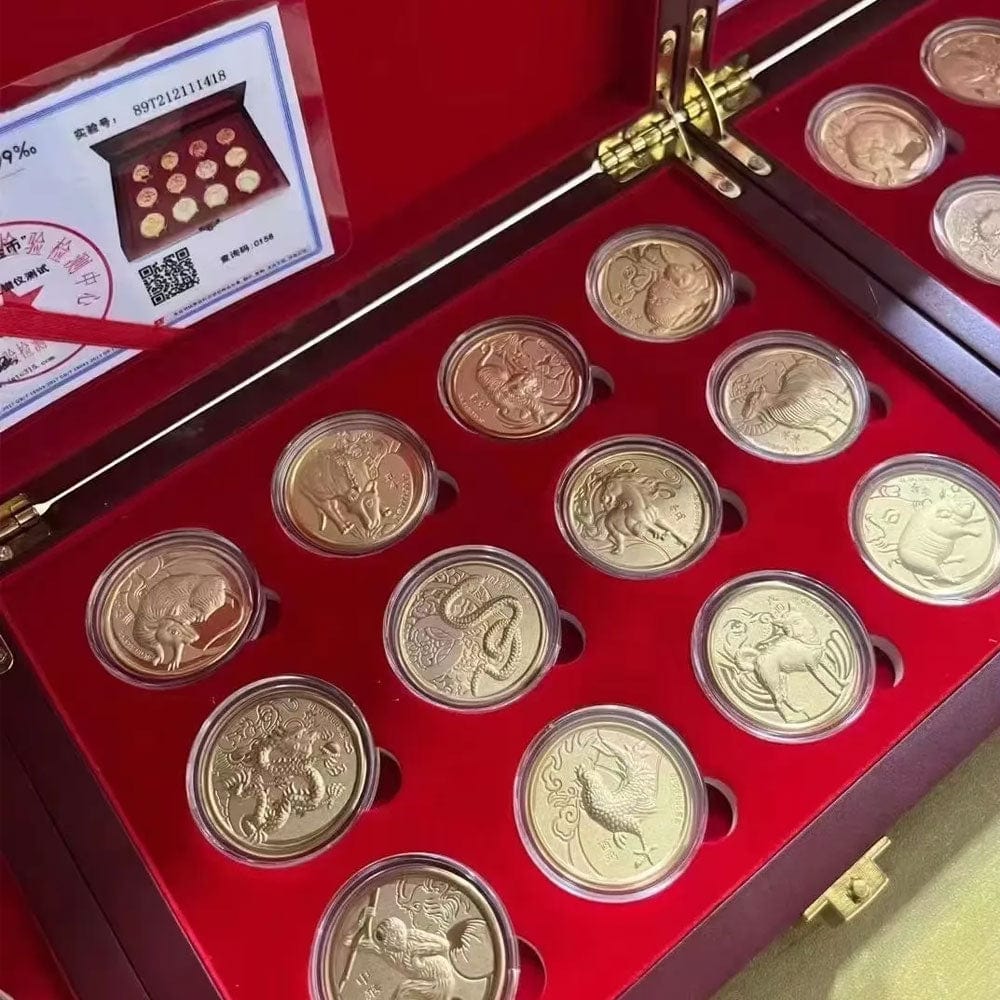 12 Pcs zodiac signs, foil decoration commemorative medal, bank gift pack with certificate