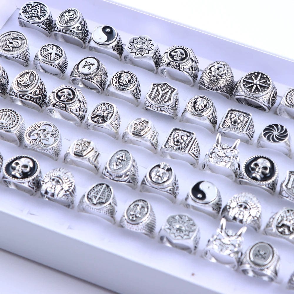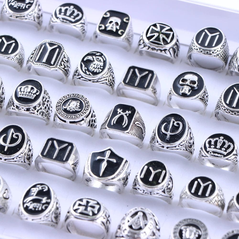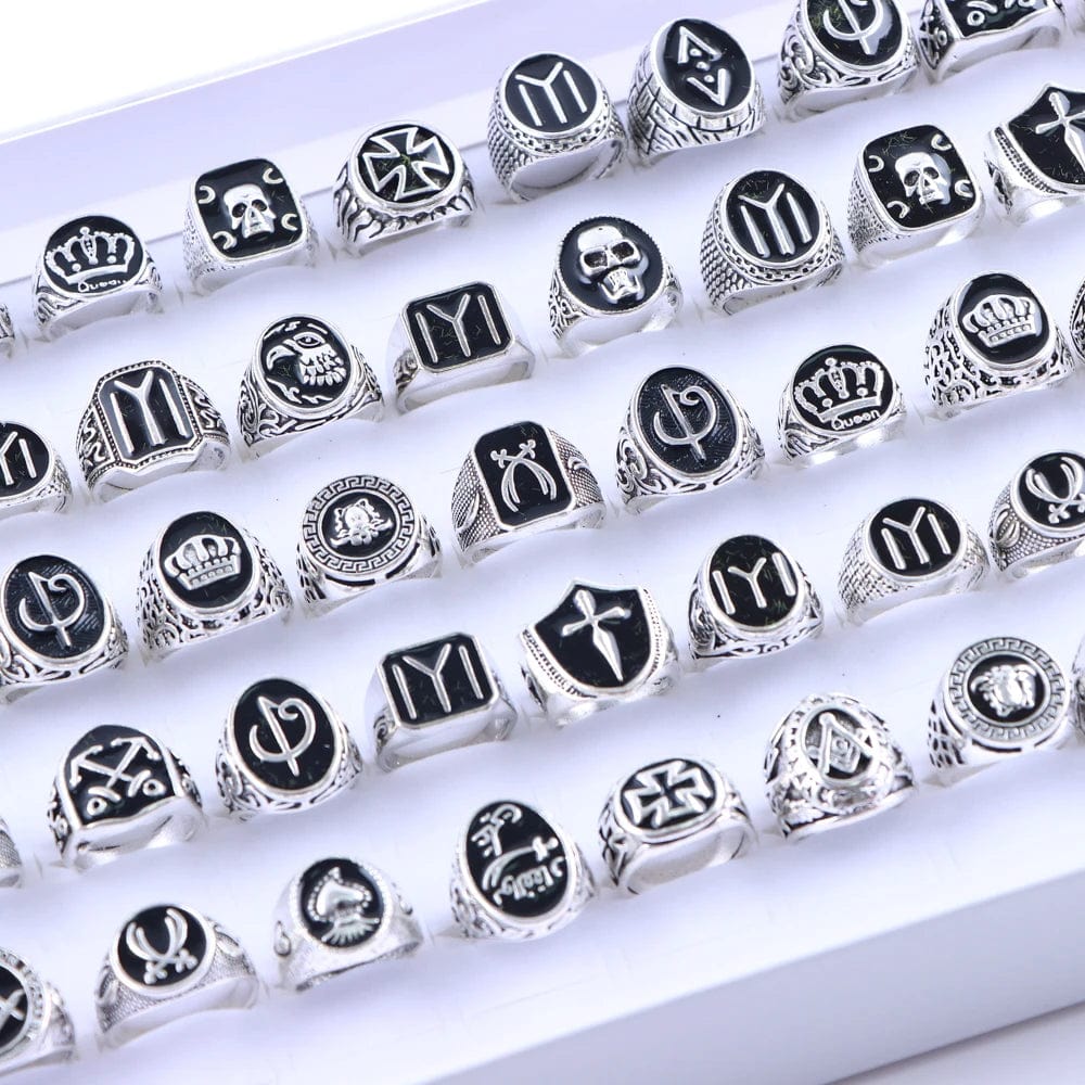 10Pcs/Lot Fashion Punk Vintage Geometry Metal Rings For Men Women Retro Gothic Finger