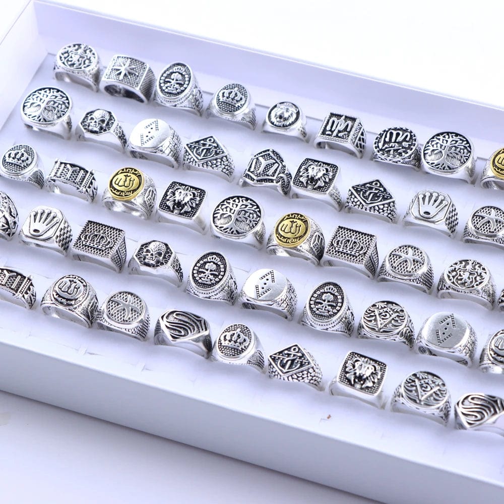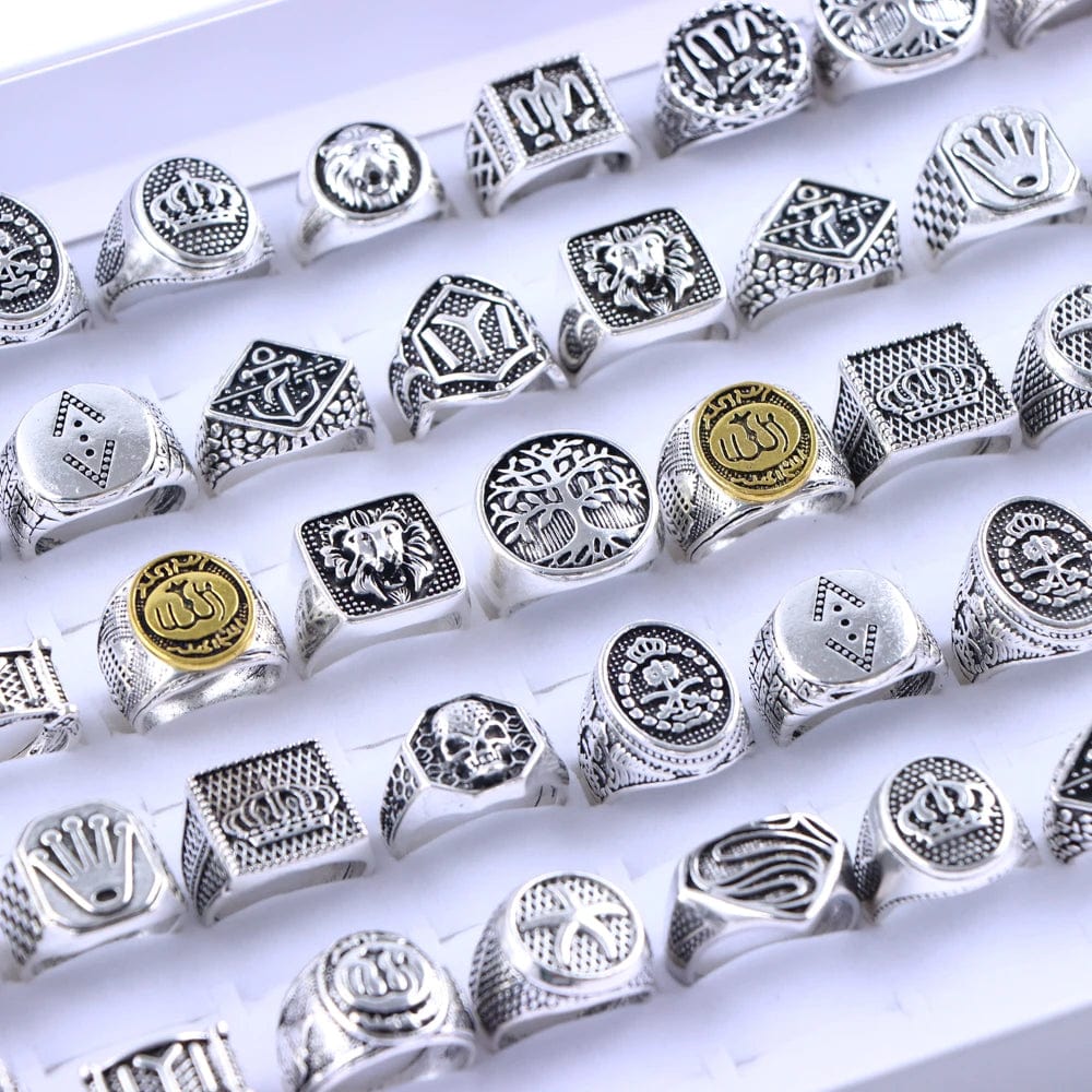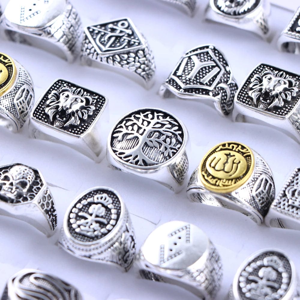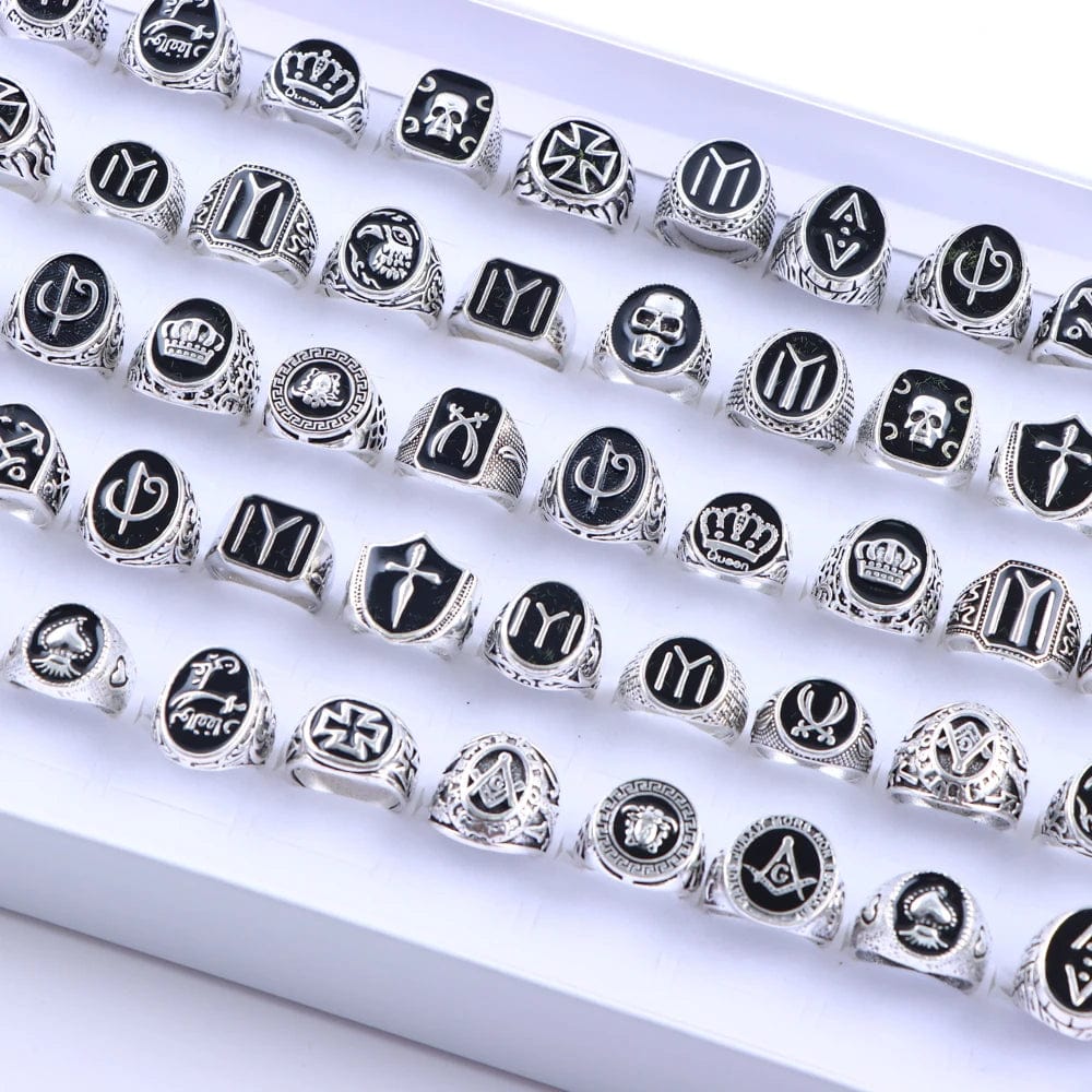 10Pcs/Lot Fashion Punk Vintage Geometry Metal Rings For Men Women Retro Gothic Finger