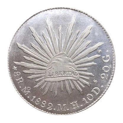1882 S Mexicana M H 8 Reales Libertad Eagle With Snake On Cactus Radiant Cap With Rays Coin