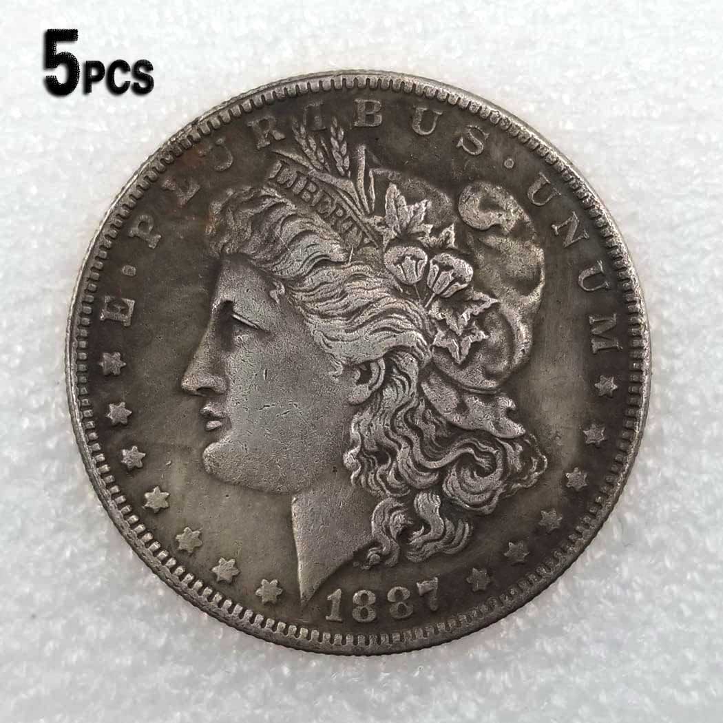 5 Pcs 1887 CC Morgan Silver Dollar Coins