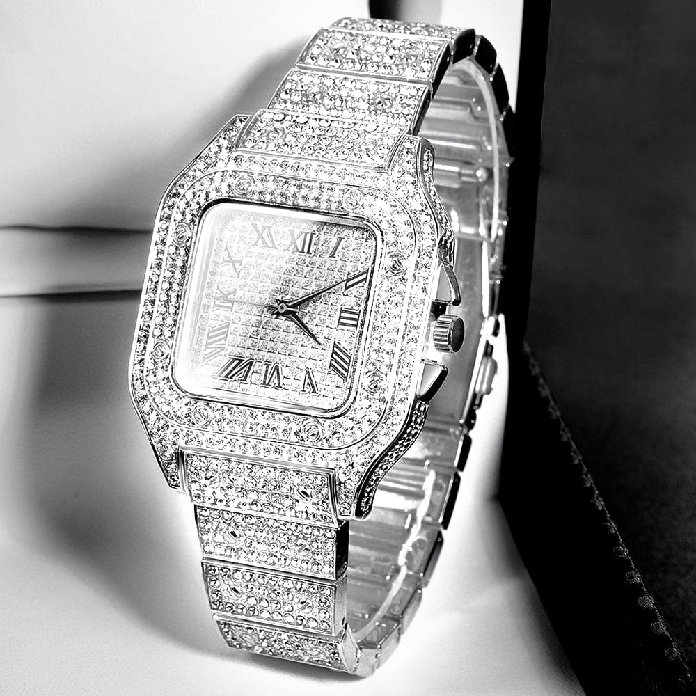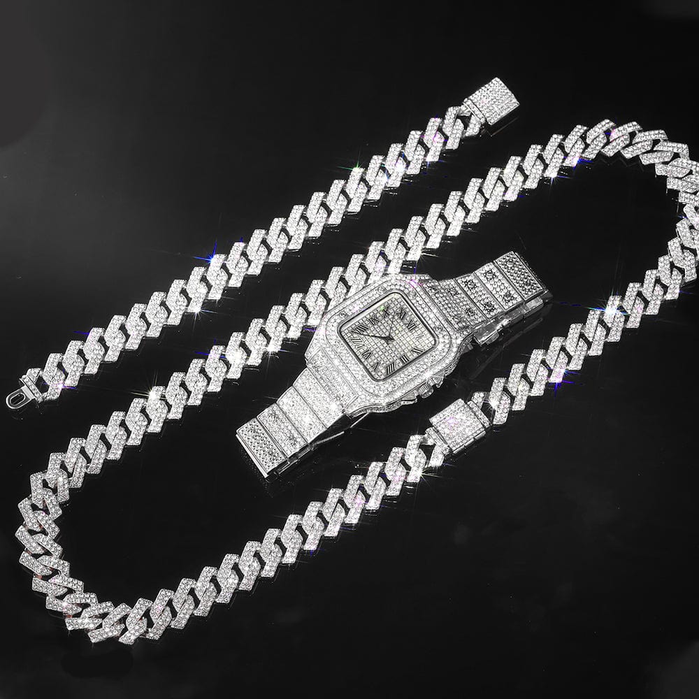 Cuban Chain Watch Hip Hop Miami Curb, Iced Out Paved Rhinestones,Bling Rapper Necklace, Bracelet Jewelry, Cartice Watch