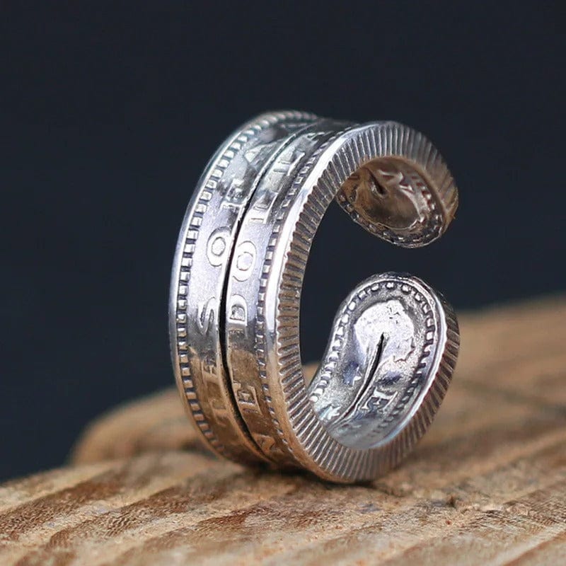 Retro Morgan Coin Ring For Men Silver / Gothic Adjustable Ring Handmade Rock Biker