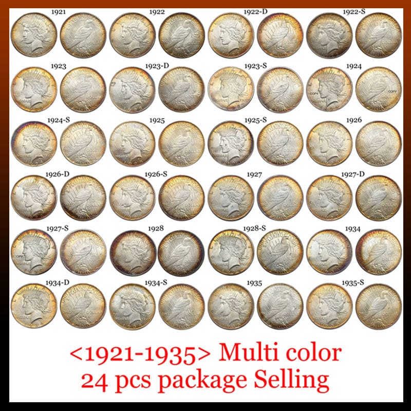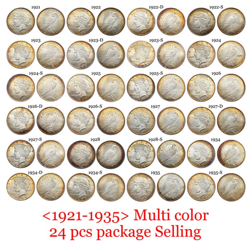 US (1921 - 1935) 24 Pcs Multi-Colored Sell 1 One Peace Dollar Plated America Coins - United States Ww2 Liberty Coins
