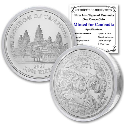 2024 /1 oz Cambodia Lost Tigers Coin Brilliant Uncirculated (in Capsule) with a Certificate of Authenticity 3000 Riels