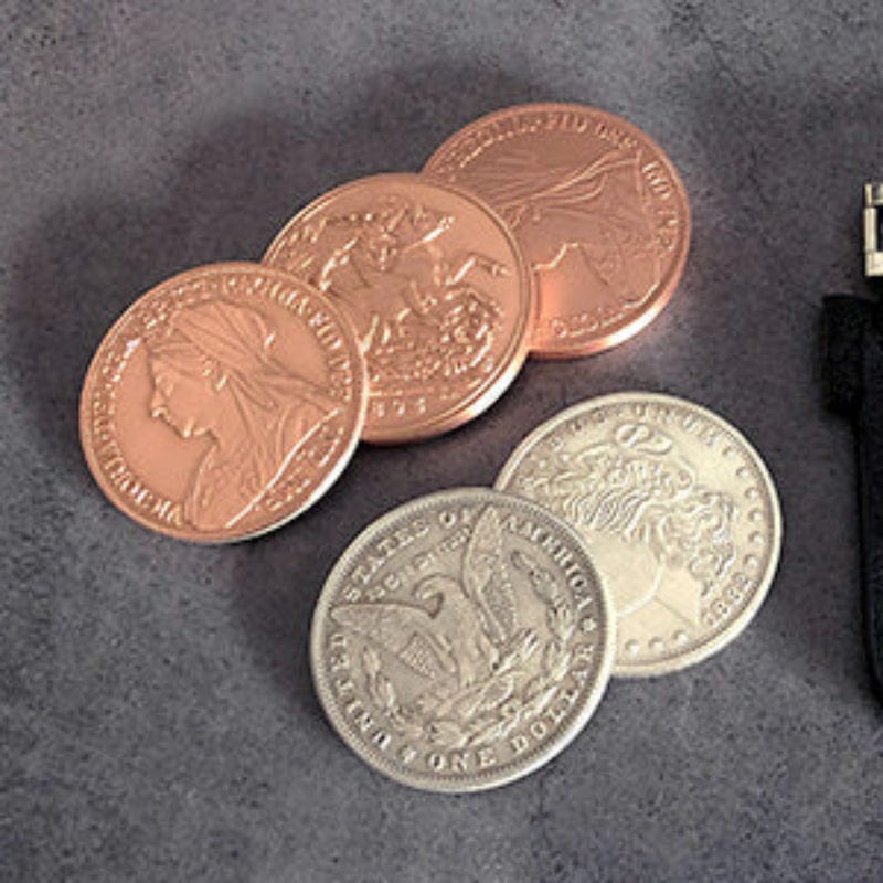 Hopping Half (Morgan Dollar and Queen Victoria Ancient Coin) by Oliver Magic Close up Magic Tricks Magic