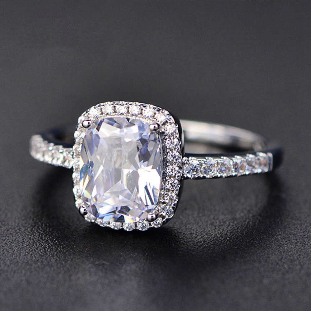 Square Large Zircon Ring Classic Temperament 925 Sterling Silver Silver Ring