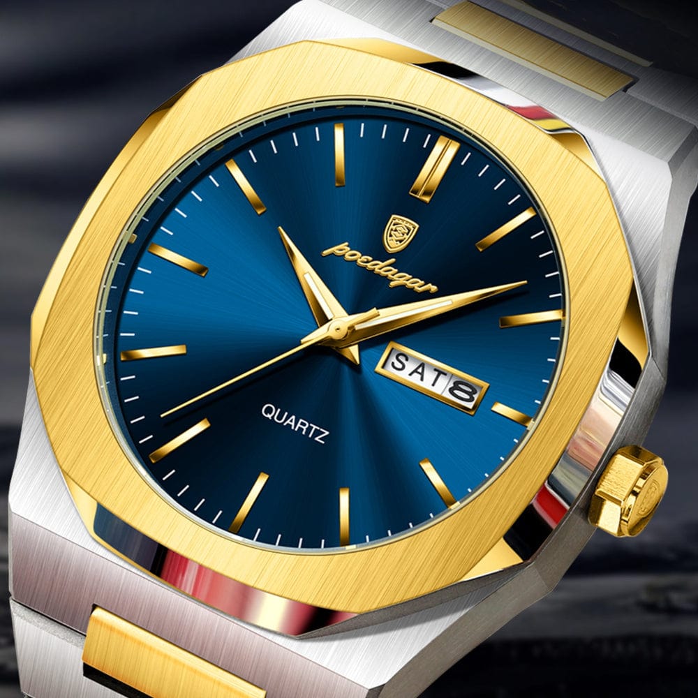 POEDAGAAR Luxury Clock Waterproof Luminous Calendar Week Wristwatch - Sports Stainless Steel Quartz Watch